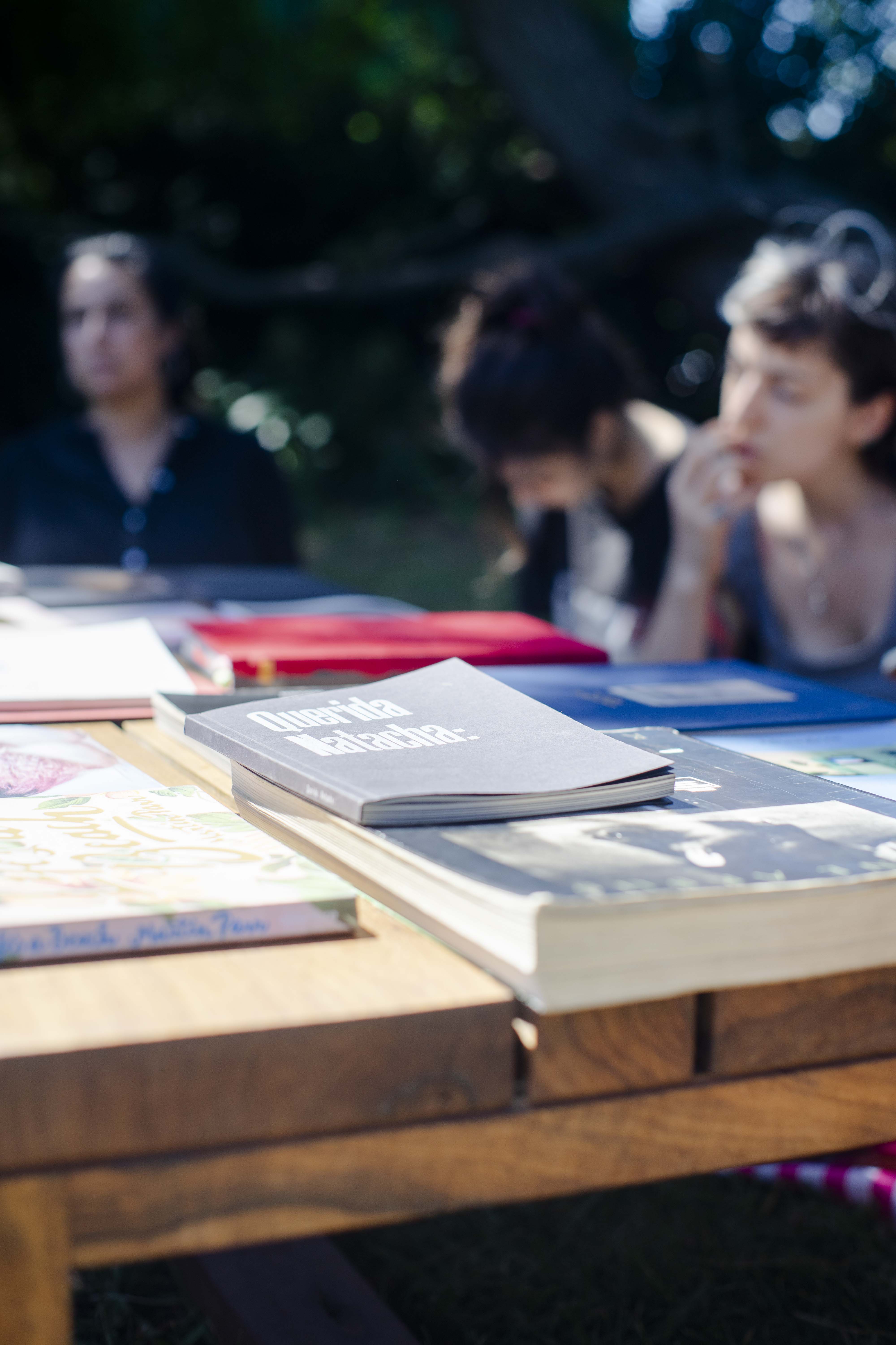 Biblioteca nómada de fotolibros y ensayos a disposición.